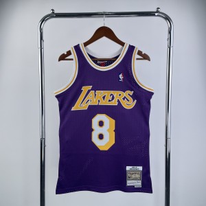 - Mn hot pressed retro jersey: SW Lakers 96/97 season, Round Neck, Purple No. 8 Kobe